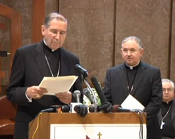 Archbishop Gomez concludes his press conference remarks, saying, “To the people and religious of the archdiocese, thank you for welcoming me into your hearts, and please never let me out of your prayers. A bishop can live with the criticism of the world. As every bishop very quickly discovers, it goes with the job description all the way back to the original twelve Apostles. But no bishop can live without the love and prayers of his people. So please, never forget Cardinal Mahony, my brother bishops or myself in your prayers.”