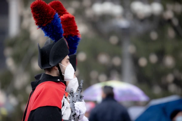 The live-streamed ceremony began with musical accompaniment by Italy’s Carabinieri Band.