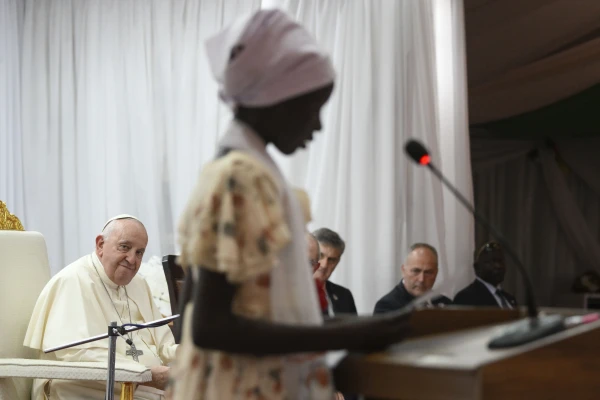 The meeting with internally displaced persons (IDPs) took place at Freedom Hall in South Sudan’s capital of Juba, where Pope Francis is undertaking a pilgrimage of peace from Feb. 3-5.