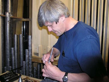 Pasi is from Austria and developed a love for the organ in his youth. He entered the organ-building industry, immigrated to the U.S., and worked at multiple firms before founding Pasi Organ Builders in 1990. His focus has been to create high-quality organs, with most used for worship. Additionally, unlike some firms that contract out parts of their work, all steps of building his organs occur under one roof.