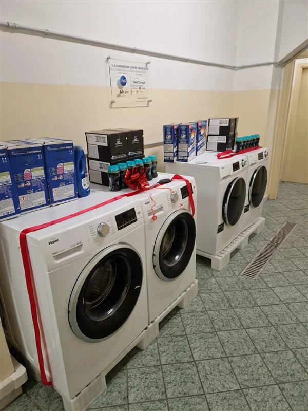The new facilities are part of an initiative launched in collaboration with the international consumer goods giant Procter & Gamble and the consumer electronics company Haier Europe, with the assistance of the Community of Sant’Egidio and Apostolic Almsgiving, the papal office of charitable activity.