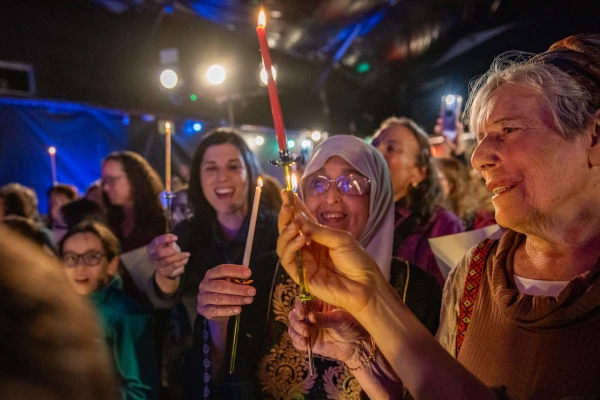 After some welcoming words and the recitation of the blessings of Hanukkah, the first candle of the festival was lit. This was followed by a joyful moment of singing led by well-known Jewish singer Noa, who wrote of the experience on her Facebook page: “Together we found a way, through the sorrow, to light a candle in the dark tent of the soul.”