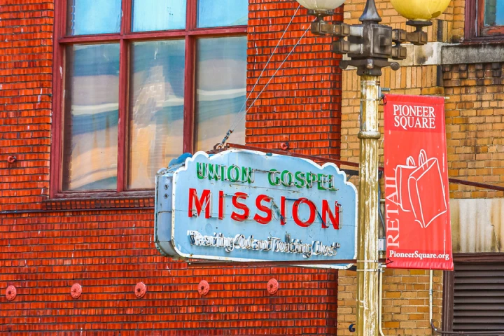 Seattle's Union Gospel Mission dates to 1932, when it launched to help victims of economic hardship during the Great Depression. It self-describes as "a non-profit Christian ministry" whose work is based "on the teaching of Jesus Christ." Its 2019 annual report said in the previous year it had provided over 155,000 shelter nights, over 924,000 meals, and 6,000 free legal consultation hours while helping 428 people leave the streets.