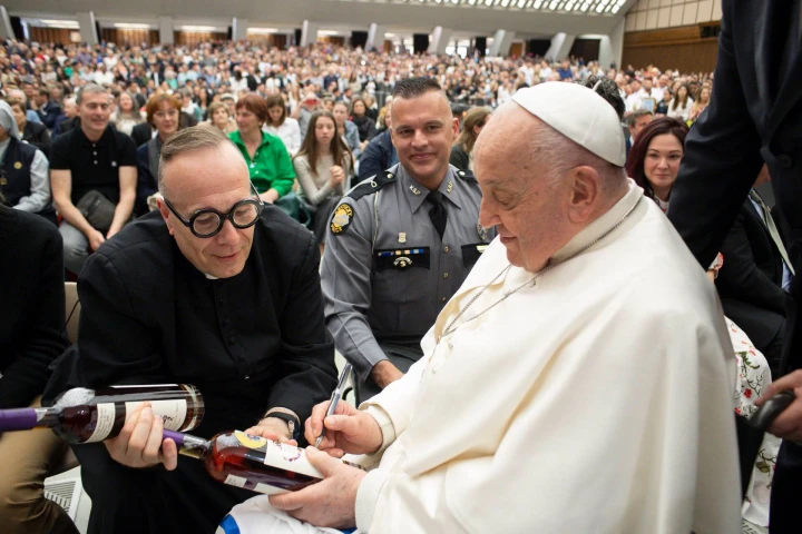 Sichko said he presented the Holy Father with the two bottles on a trip to the Vatican in May. Pope Francis signed both and then asked the priest: “Which one is mine?”