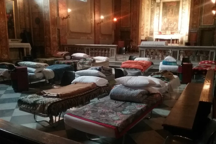 The church is located in an area of Trastevere belonging to the Vatican. Volunteers welcome guests during opening hours and are also available throughout the night. They also try to help find solutions to the material needs and health of guests and to locate for them, if possible, another, longer-term solution for shelter.