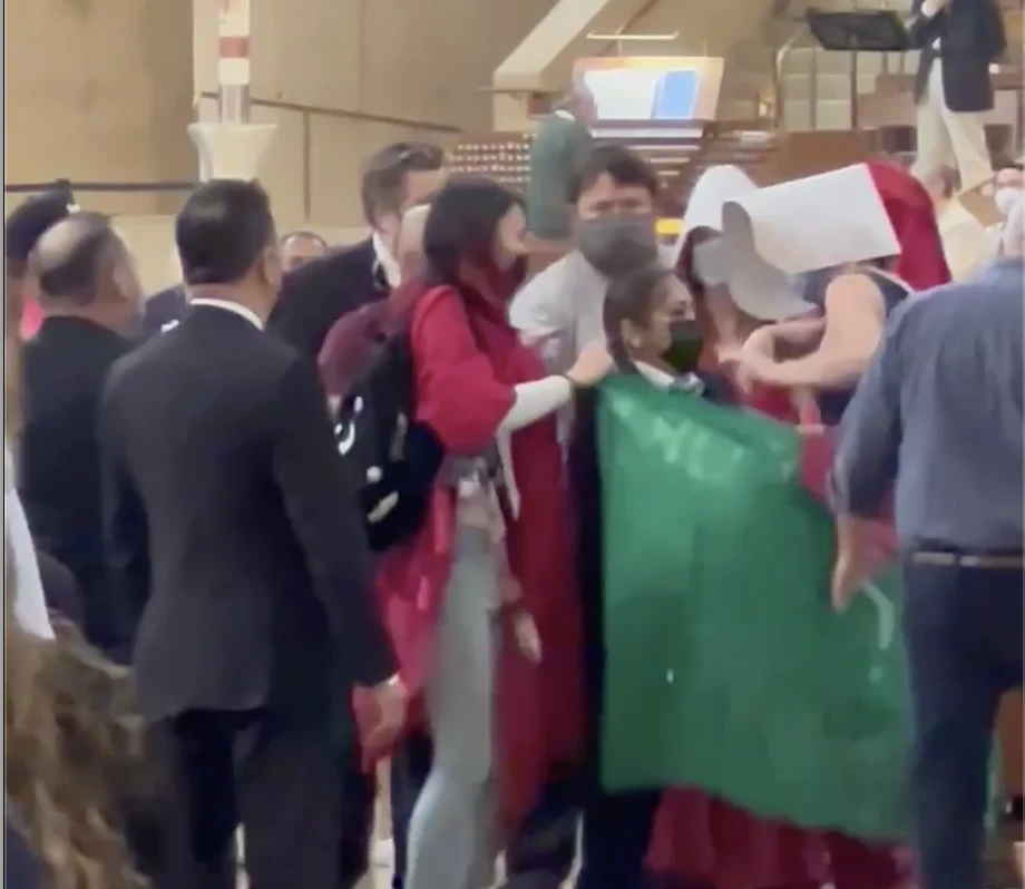 Several protesters dressed in "huge hats" and "red, hooded gowns," disrupted a Mass at the Cathedral of Our Lady of... Read more