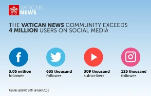 After the recent re-branding and consolidation of the Vatican's various media outlets, their social media platforms have now reached a total of more than 4 million followers, who receive their daily papal news with a fresh logo.