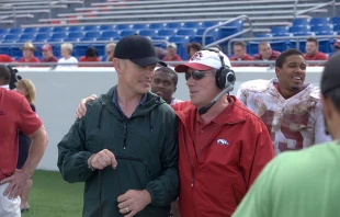 There are few actors in Hollywood brave enough to wear their Catholic faith on their sleeve and base their career decisions about the films and TV shows they will and won’t do on the morals they’ve been instilled with. Jim Caviezel, who played Christ in “The Passion of the Christ” before becoming the star of the hit CBS series “Person of Interest,” and Mel Gibson are two of the standouts. But Neal McDonough is another staunchly Catholic actor who is making a splash in Tinseltown, with nonstop work in television including a regular role on the CW network’s hit superhero show “Arrow” as villain Damien Dahrk. What’s even more remarkable about him, however, is that the married father of five’s strong standard of not performing sex scenes has inspired him to walk away from a $1 million payday for the ABC “Scoundrels” in 2010, drawing attention and admiration for his principles from those in show business as well as far beyond. Now he’s the one of the stars of the new faith-driven movie “Greater,” in which he plays the real-life character of Marty Burlsworth, who instilled a passionate faith and unquenchable spirit in his younger brother Brandon. Brandon went on to become the greatest walk-on player in the history of college football, becoming a beloved player for the Arkansas Razorbacks despite being considered too short and too fat to play, and who set an inspiring example for all when he made it all the way to the NFL – only to be killed in a car crash 11 days after being drafted. The movie powerfully addresses his remarkable life and the way that his death also inspired others to greater faith and trust in God, and McDonough took the time to discuss the movie with me for CNA. The movie is playing in select theatres nationwide, and you can find the them by visiting the movie’s site at www.greaterthemovie.com. You play Marty Burlsworth in GREATER. Tell us a little about the character. Well, Marty is a real guy – and a really great guy. He’s the older brother of the movie’s central character, Brandon Burlsworth, a phenomenal offensive lineman for the Arkansas Razorbacks in the late 90s. Brandon is right on the cusp of making it the NFL, he gets drafted by the Colts, and he dies. That really puts Marty through the ringer – and the movie follows how he tries to get his faith and his joy back after the tragedy. Sounds like a meaty and emotional role. It really is. Marty is a typical big brother –- loves Brandon, wants the best for him, razzes him a little bit throughout his life. But as much as Brandon looks up to Marty, Marty looks up to him, too – because he has such high character and commitment to all he does. Particularly when it comes to his religious faith, Brandon’s is deep and consistent – and Marty admires that. Especially when he struggles with his own faith after Brandon dies. Speaking of faith, you’re well-known as a Christian in Hollywood for your strong Catholic faith. Did that influence your decision to star in a faith-based film like GREATER? My Catholic faith is central to who I am as a human being – not just as an actor – so it informs every decision I make, whether it’s deciding on a project or deciding on how to treat the guy who cuts me off in traffic. And, for the record, I don’t get it right in either case every time! I’m always on the lookout for projects with a strong moral and inspirational core – and GREATER certainly qualifies there. It’s an entertaining, thought-provoking take on what it looks like to follow the path God lays out before you even when it has bumps and twists and turns. As long as we’re on the subject of your faith, it’s been reported that you actually lost a role because you wouldn’t do the graphic love scenes that were demanded of you. That your Catholic convictions and your respect for your wife made you uncomfortable about the part. (Laughs) yes, it’s true that I don’t like to do – I won’t do – those kinds of scenes because of my desire to honor Ruve. One of the reasons I take my fair share of villain roles is because very rarely are villains required to do love scenes. I’m just more comfortable as a man and a husband when that’s not part of the job. Speaking of villains, you were the chief bad guy on last season’s ARROW, the CW series based on the Green Arrow comic books. You played Damien Darhk, who was very dark indeed. How much fun was that show to do? Well, it’s still fun to do – I’m filming the upcoming season now and it’s a delight. He is really a rich, hammy villain – very much in the brilliantly crazy mold of other comic-book bad guys like Lex Luthor and even the Joker – without the clown makeup. I mean, who doesn’t want to be in a superhero series or film? I’ve been in two now, and it’s a dream come true for every actor who was a kid who loved comic books. Can you give us any details on the new season of ARROW? You know a good villain never gives away his plot. You’re going to have to tune in like everybody else. Let’s go back to GREATER. The young man who plays Brandon, Chris Severio, is a first-time actor. What was it like working with him? Chris is a top-notch young man and a very fine, intuitive actor. He’s the moral center of this movie – and that’s a tricky thing to play without coming off as too pious or self-righteous or boringly goody two-shoes. Chris does a very good job of avoiding those stereotypes and giving a very honest, real performance. You root for Brandon, you see why Marty and everybody else admires him so much, because of the sincerity and grit Chris brings to the part. Were you aware of Brandon’s story before the film? I knew about the tragedy of his death, of course. And about what a remarkable story he was as a player – to make it as a non-scholarship walk-on at a major school like Arkansas and end up being drafted fairly high into the NFL. That takes a remarkable amount of determination. But I