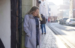 The video ad from abortion referendum backer Ohioans United for Reproductive Rights shows a man kneeling in prayer in what appears to be a Catholic church.