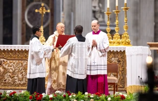 The mission of a pope “is love itself, which becomes service to the Church and to all humanity,” Cardinal Dominique Mamberti said in St. Peter’s Basilica.