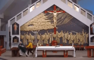 The suspect approached and attempted to stab the 38-year-old pastor of with a knife near the altar.