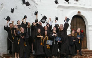 Receiving their diplomas last month, the first graduates of John Paul the Great Catholic University were hailed as “pioneers” and “heroes,” whose legacy will be remembered by future graduating classes. Nineteen students earned bachelor’s degrees – 10 in business and nine in communications media – during a graduation ceremony in St. Francis Chapel at Mission San Diego de Alcala.