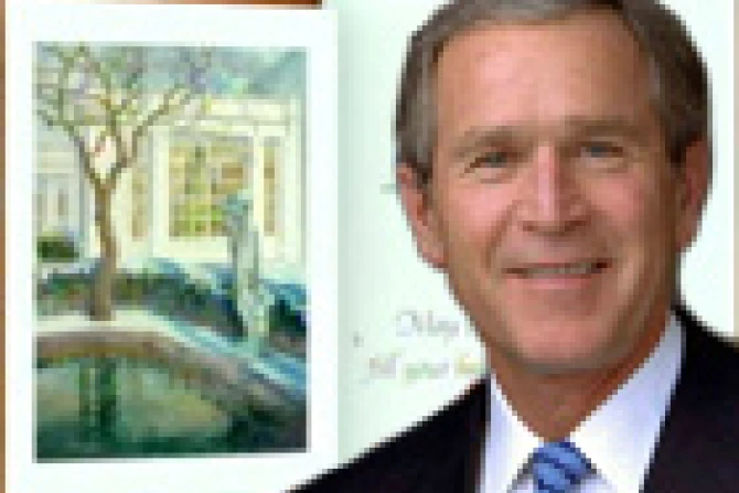 The card closes: “May the joy of all creation fill your heart this blessed season 2007.” The Christmas card, signed by both George and Laura Bush, was paid for by the Republican National Committee.