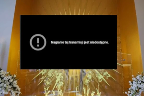 Viewers connecting to the live feed saw a black rectangle over an image of the adoration chapel in Niepokalanów, 25 miles west of the capital, Warsaw. The rectangle contained the message: “A recording of this broadcast is not available.”