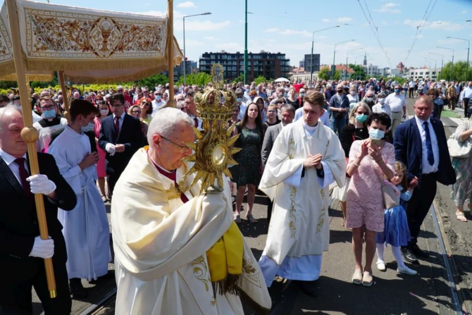 And Archbishop Wojciech Polak of Gniezno commented that Corpus Christi “is about a living awareness that the Eucharist is the sacrament of God's presence and this essence could not and can never be replaced by virtual reality.”