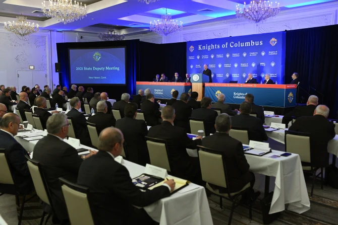 The Knights of Columbus is the world's largest fraternal organization. Leaders from every U.S. state and around the world attended Friday’s meeting in New Haven, the site of the organization’s founding. It was the Knights’ first national in-person meeting since the start of the pandemic in 2020.