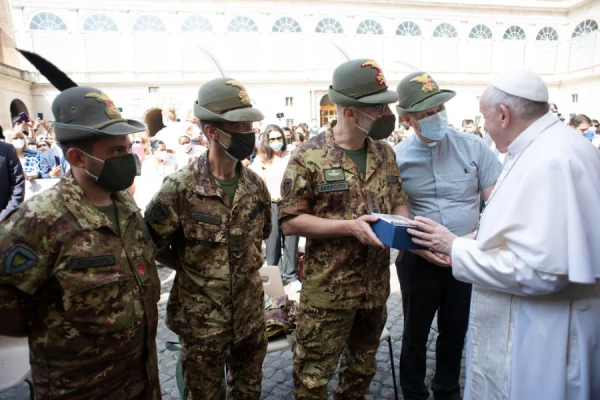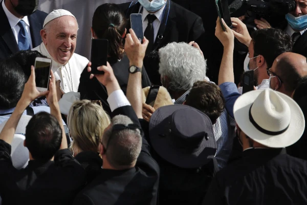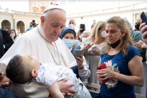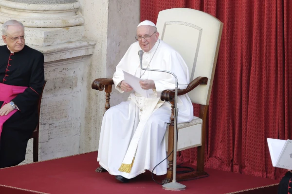 The general audience, which was held in the Vatican’s San Damaso Courtyard, was Francis’ final catechesis on prayer before starting a new theme next week.