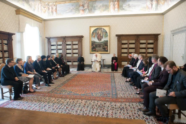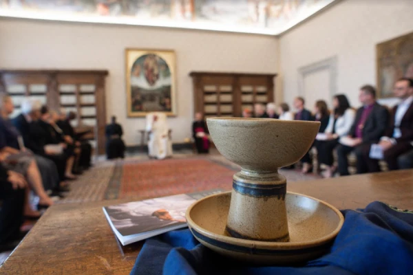 In his speech, the pope thanked the group for gifting him a paten and a chalice made in the studios of the ecumenical community Taizé.