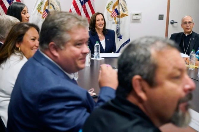 Harris mentioned policies of family separation, “inhumane” housing for migrants, and a “broken” asylum system, in comments during the portion of the meeting open to the press pool. "Do justice, love mercy, walk humbly with your God,” she said to Bishop Seitz, quoting Micah 6:8.