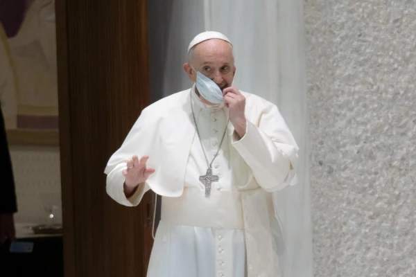 Pilgrims sat close together wearing face coverings, applauding frequently throughout the general audience -- the pope’s first since he underwent colon surgery on July 4. The pope walked into the hall, which has a capacity of 6,300 people, wearing a medical mask.