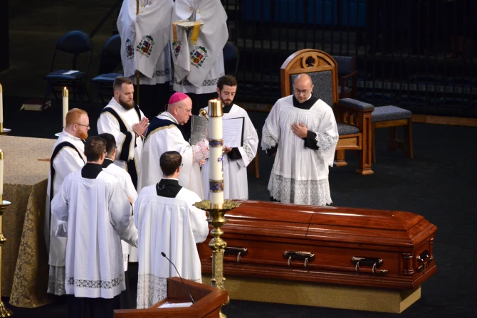 During Wednesday's funeral Mass for Father Emil Kapaun, the Bishop of Wichita called the U.S. Army chaplain who died in a North Korean prisoner of war camp a “humble, and saintly priest.”