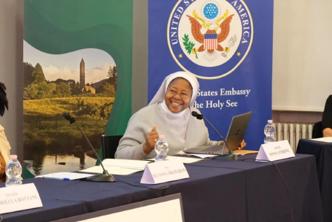 Okaedion described the dehumanizing experience of sex slavery at an event co-hosted by the U.S. Embassy to the Holy See and the Embassy of Ireland to the Holy See entitled: “Empowering a New Generation to Fight Modern Slavery.”
