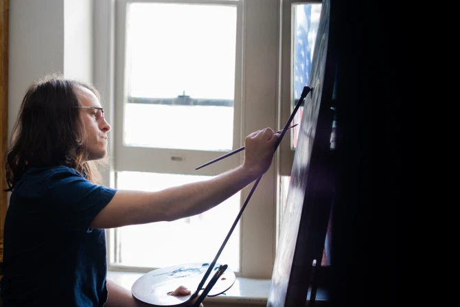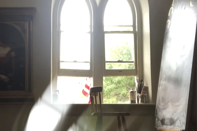 I like to wake up early, have my coffee, and get into the studio early. My studio is in this old building from 1742 — it predates the Revolutionary War — and it has beautiful Gothic windows. It almost feels like I’m in a monastery. It's so quiet. As soon as I go there, I feel like it’s this very sacred sort of space. I like to say a prayer, focus, and get into my zone.