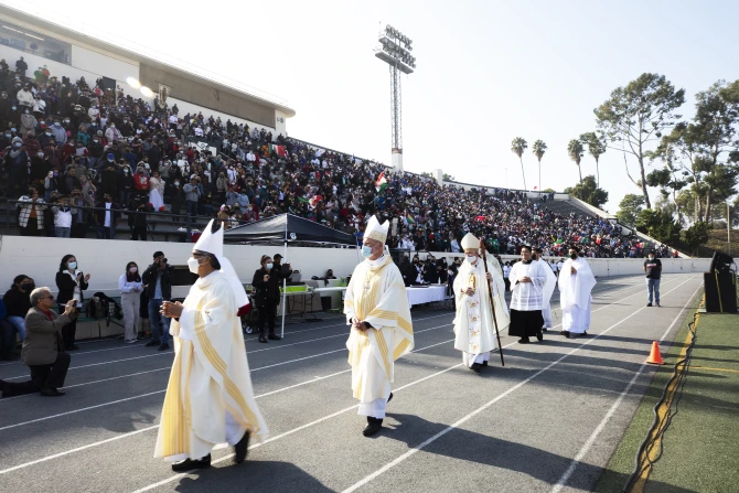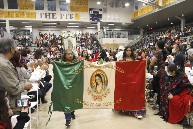 The Diocese of San Diego also celebrated Our Lady of Guadalupe with a procession and Mass on Sunday. Auxiliary Bishop Ramón Bejarano participated in the procession and celebrated the bilingual Mass, which was held in the gym at St. Augustine High School.