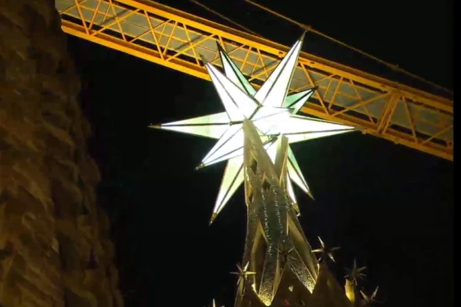 Pope Francis said that a star lit up for the first time on Wednesday atop Sagrada Família Basilica shines for the poor, ill, elderly, and young people of Barcelona.