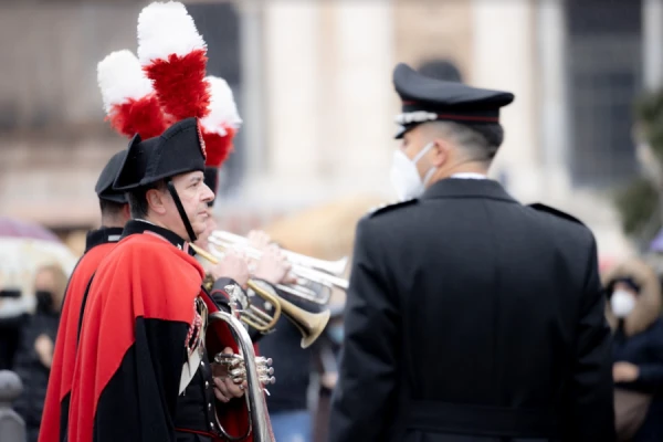 The live-streamed ceremony began with musical accompaniment by Italy’s Carabinieri Band.