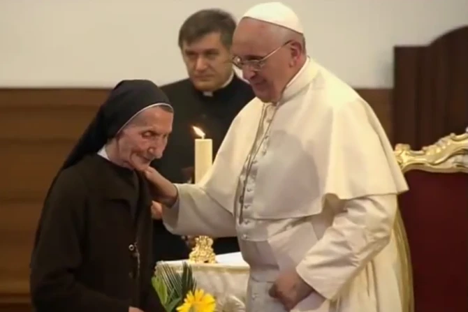 In a meeting with Pope Francis in Albania in 2014, the Stigmatine sister shared the story of how she baptized babies in secret during this time of persecution.
