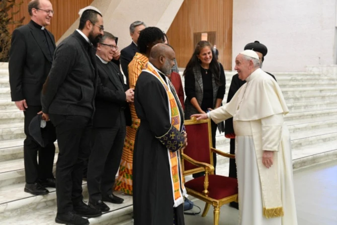Addressing English-speaking Catholics, he said: “I welcome all the English-speaking pilgrims taking part in today’s audience, especially the representatives of the Global Christian Forum and the seminarians and student groups from the United States of America. Upon all of you, and your families, I invoke the joy and peace of Jesus our Lord. God bless you!”