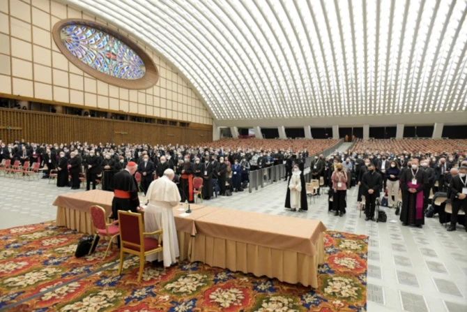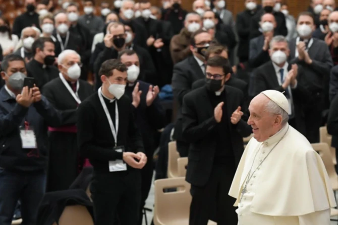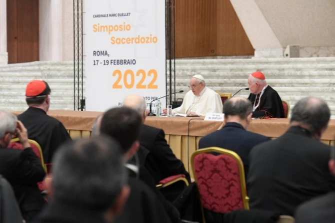 The pope’s speech marked the start of the live-streamed summit “For a Fundamental Theology of the Priesthood,” taking place on Feb. 17-19 in the Vatican’s Paul VI Hall. The symposium was first announced in April 2021.