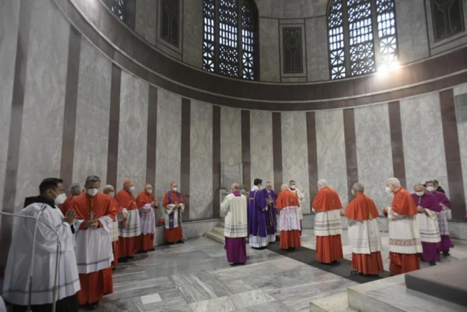 On Wednesday, the Litany of the Saints was sung by cardinals, bishops, priests, Benedictine monks, Dominican friars, and laypeople as they took part in the procession from St. Anselm Church to the Basilica of Santa Sabina.