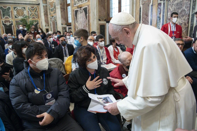 “Disability, in all its forms, represents a challenge and an opportunity to build together a more inclusive and civil society, where family members, teachers and associations like yours are not left alone but are supported,” the pope said in the meeting on April 1.