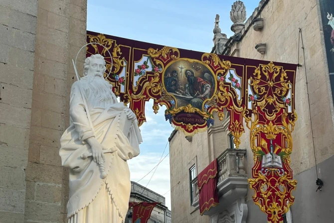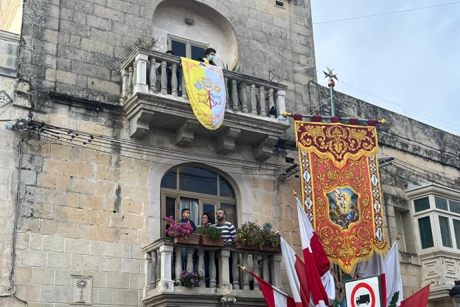 Malta’s centuries-old Catholic faith and traditions were on display in the streets in front of the grotto, which were decorated with elaborate Maltese banners and flags depicting their patron saint.