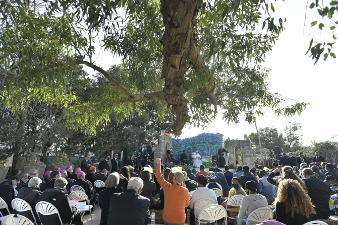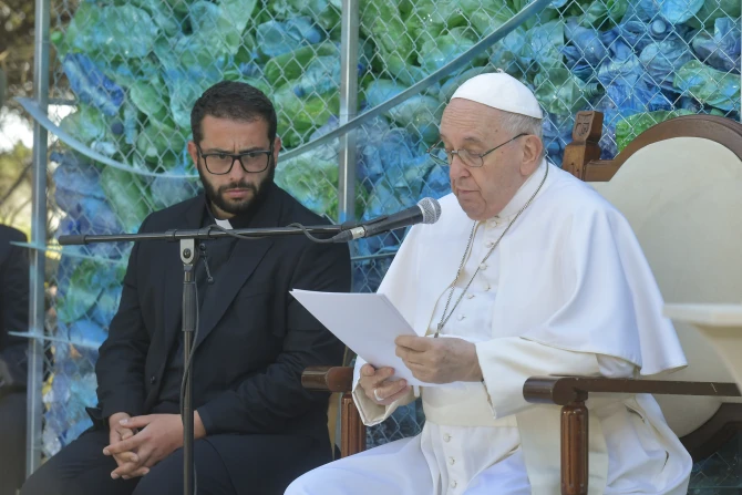 The Holy Father made his comments during an outdoor ceremony on the second and final day of his trip to the Mediterranean island nation. Seated in front of a display of crushed water bottles and life jackets, Pope Francis began his address by recalling a message he gave from a refugee center on the Greek island of Lesbos in December 2021.