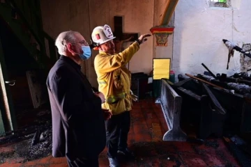 More than 1,700 people participated in the pilgrimage from Mission San Gabriel Arcángel to the Cathedral of Our Lady of the Angels in Los Angeles. Before the Mass, pilgrims were able to see the state of renovations at the mission, which was damaged by arson in July 2020.