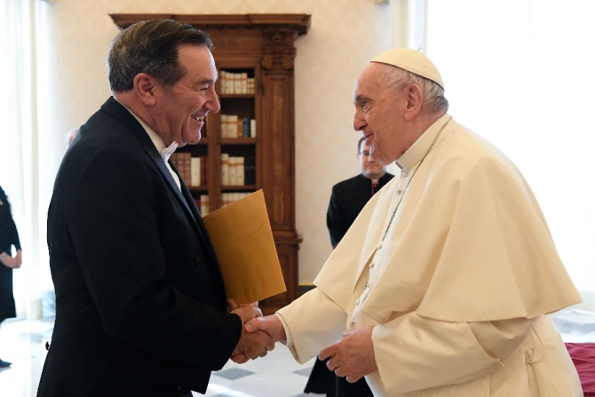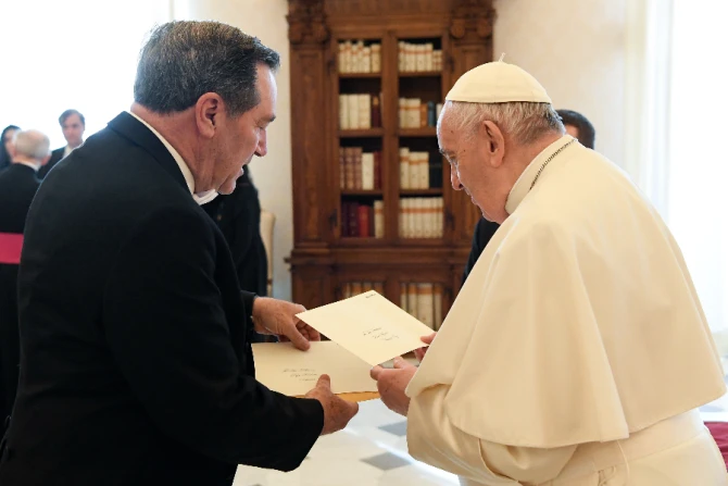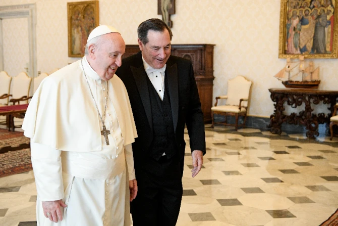 The new U.S. ambassador to the Holy See officially began his term on Monday with an audience with Pope Francis.