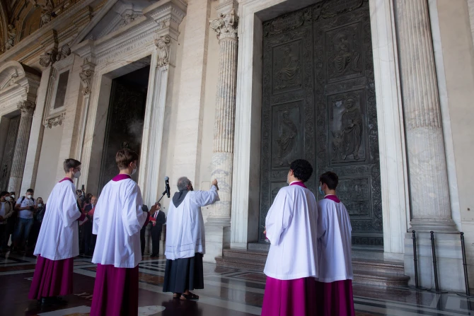 On May 11, the prayer began at the entrance of the basilica, in front of the holy door, and was followed by a procession through the basilica, stopping at images of the Virgin Mary.