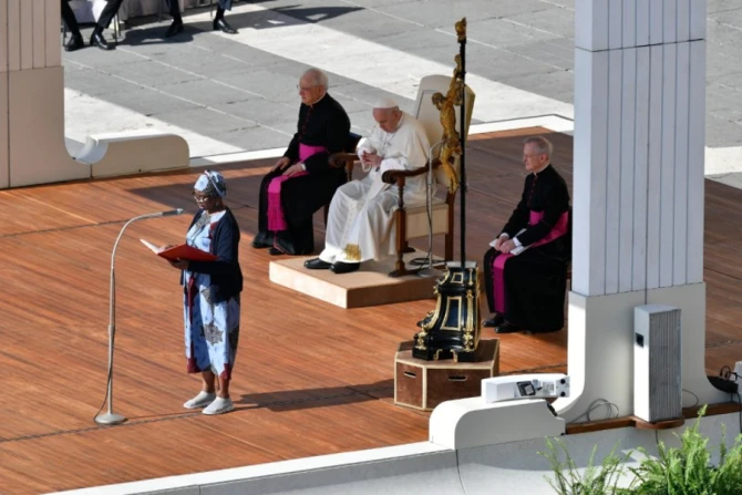 After the pope’s address, a summary of his catechesis was read out in seven languages.