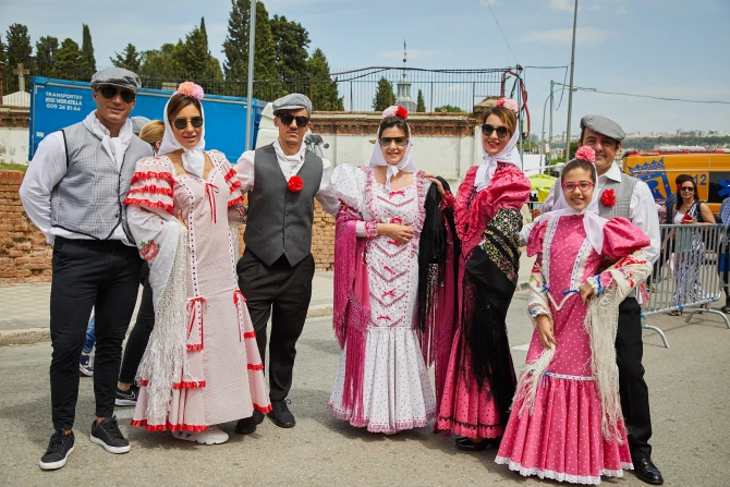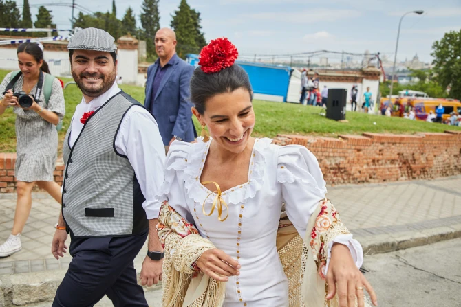 Many dressed up in Madrid’s traditional clothing, known as “traje de chulapo(a)” in Spanish, which includes wearing a red carnation.