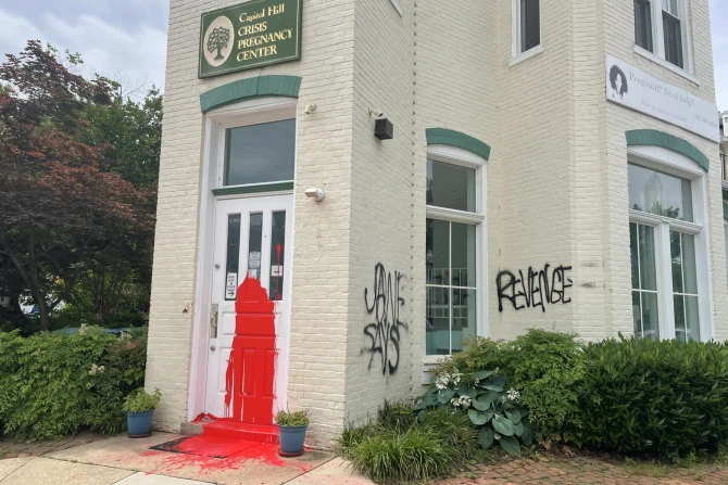 A pregnancy resource center in Washington, D.C., was vandalized with red paint and graffiti this week. The incident is the latest in a string of attacks on pro-life organizations and Catholic church buildings.