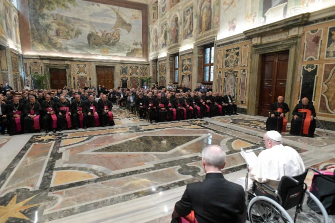 In his speech in the Apostolic Palace, Pope Francis reflected on the changing times, including the decline in vocations.
