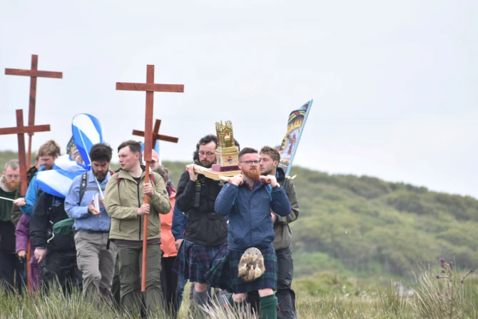 Sixty people walked for dozens of miles from June 11 to 13 to pray for Scotland, for spiritual renewal amid the pandemic, and to return a relic of the missionary Irish saint to the site of his deeply influential monastic community.
