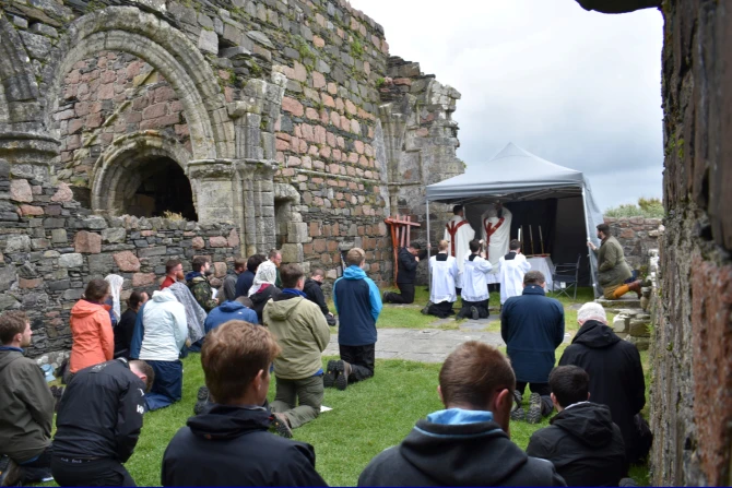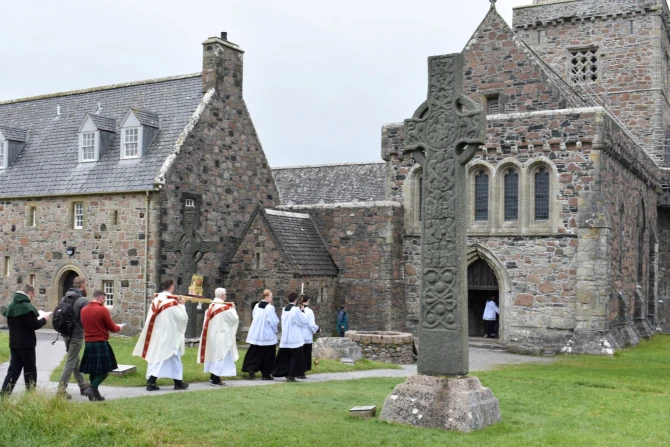 The group celebrated Mass at the ruins of Iona Nunnery, a Benedictine convent founded in the 13th century. They then held a procession to Iona Abbey, rebuilt in the 20th century at the site of St. Columba’s community.