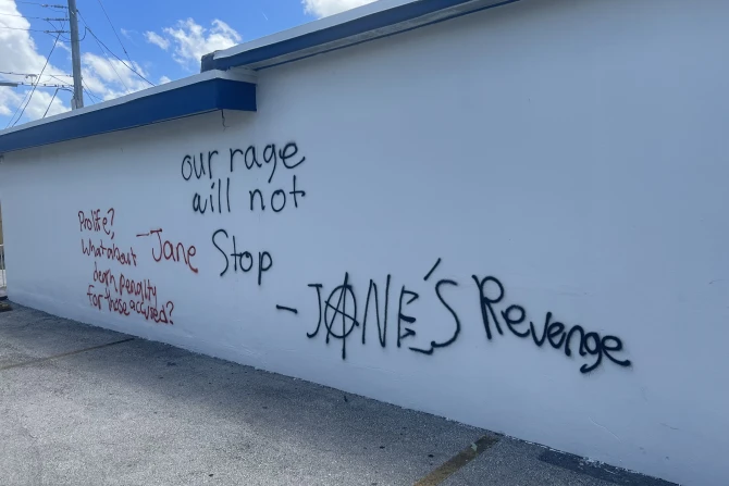 Martha Avila, president and cofounder of Heartbeat of Miami, told CNA that the vandalism, which also attacked the clinic’s security system, resulted in thousands of dollars in damages. Photos of the vandalism shows the words “Janes Revenge” and “If abortions aren’t safe, the neither are you” among other pro-abortion messages and anarchist symbols all written in graffiti.