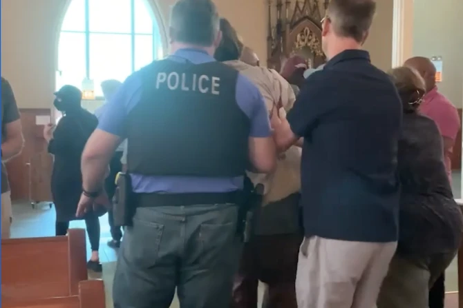In a July 3 bulletin message, the church’s pastor, Father Lawrence Lisowski, addressed the moment when the protest ended: “After a few minutes,” he said, “we were able to regain our composure and continue on with our prayer.”