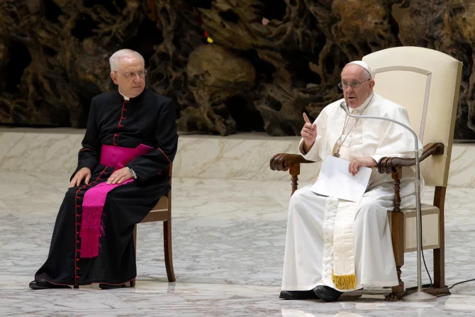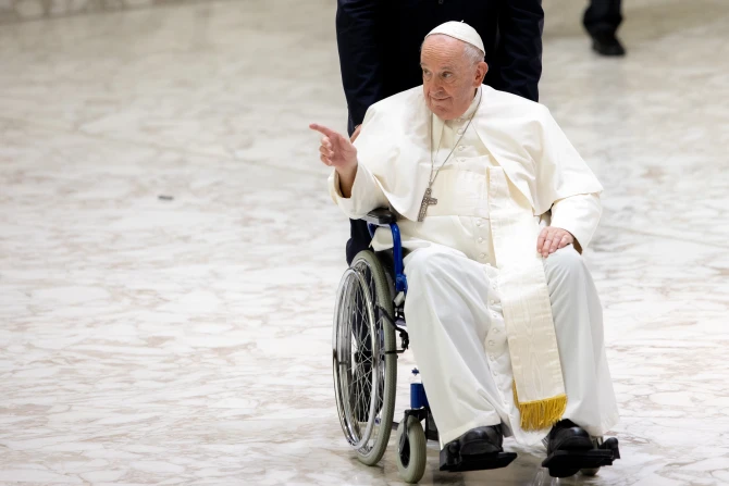 Pope Francis also took time to greet and offer blessings to those in the crowd using a wheelchair. Among those present in the hall for the pope’s audience was a group of indigenous people.