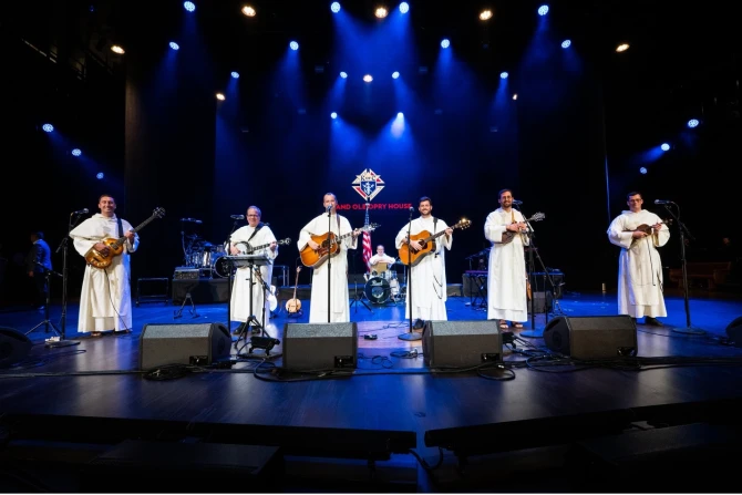 The friars’ show was made all the more special by the presence of dozens of their religious sisters, from the Dominican Sisters of Saint Cecilia in Nashville, who clapped, sang, and laughed along with the band.
